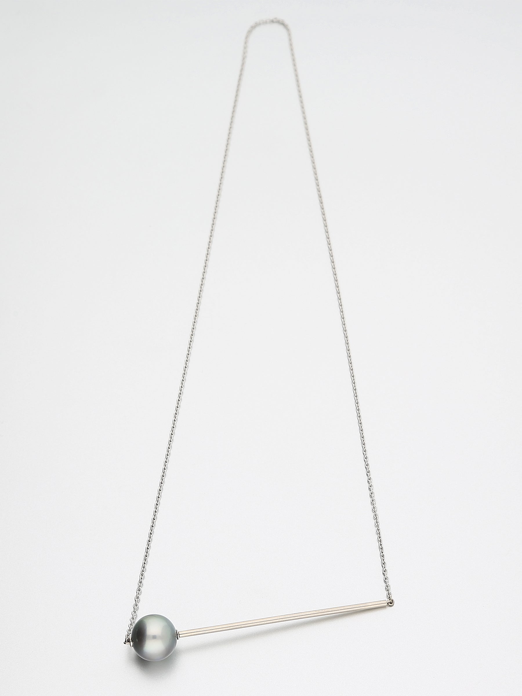 Abacus Pearl Necklace, White gold with light Tahitian pearl 11mm