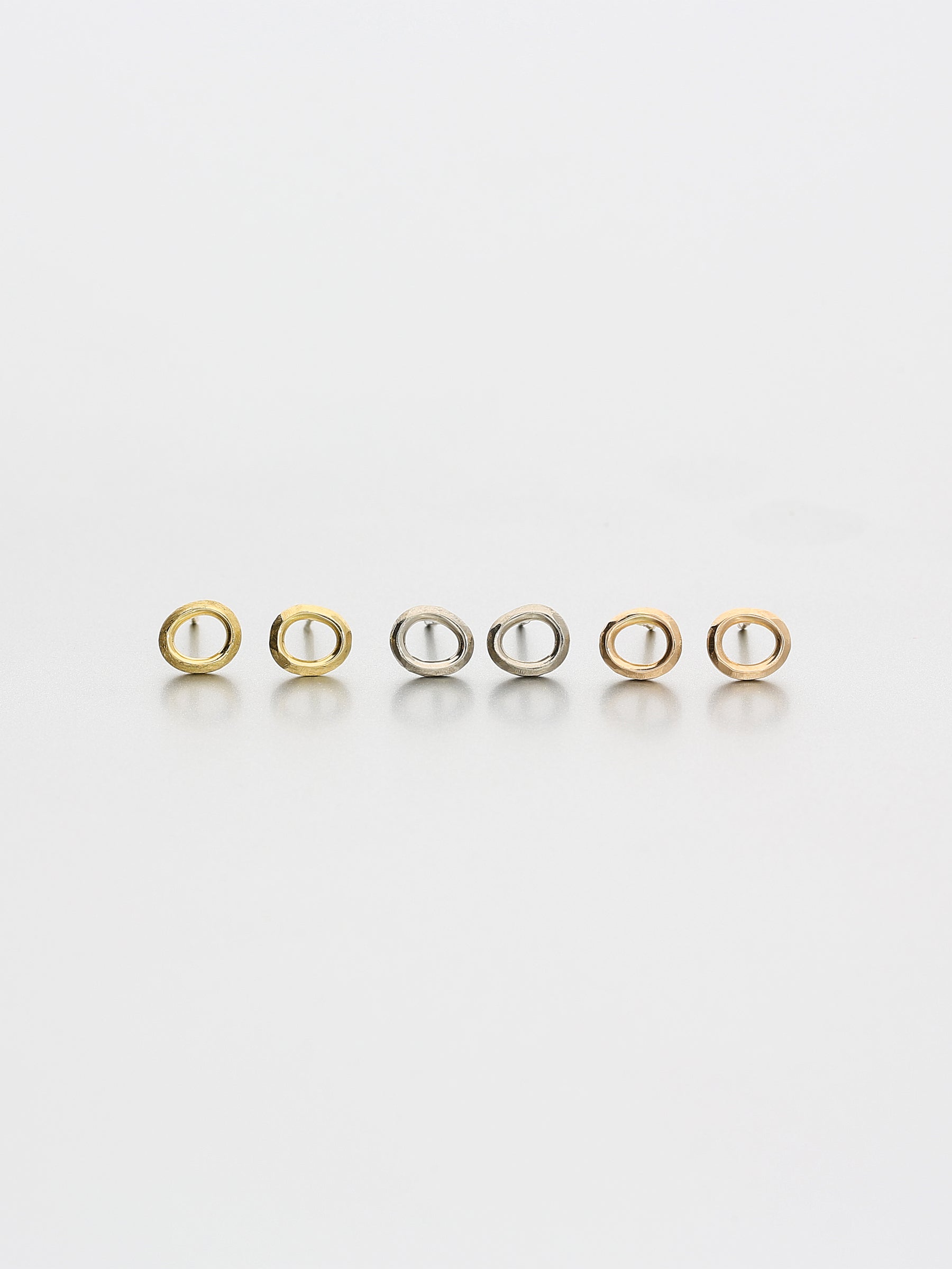 The Ori earrings are formed on the elegant ellipse, specifically shaped askew.