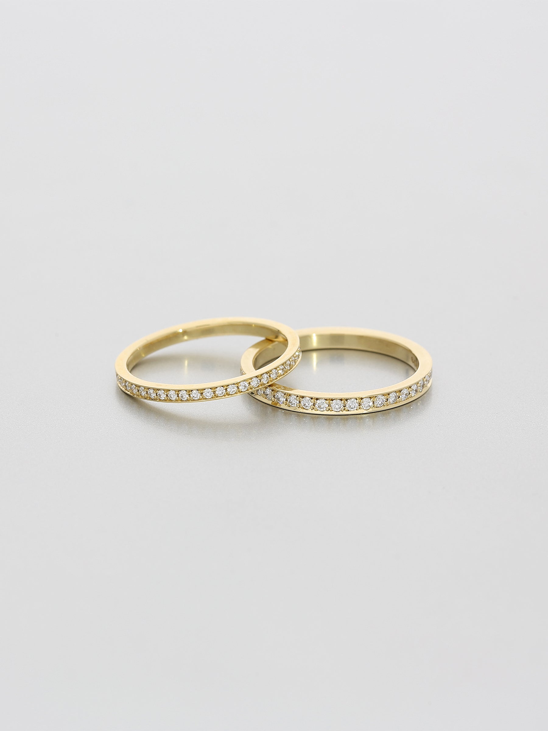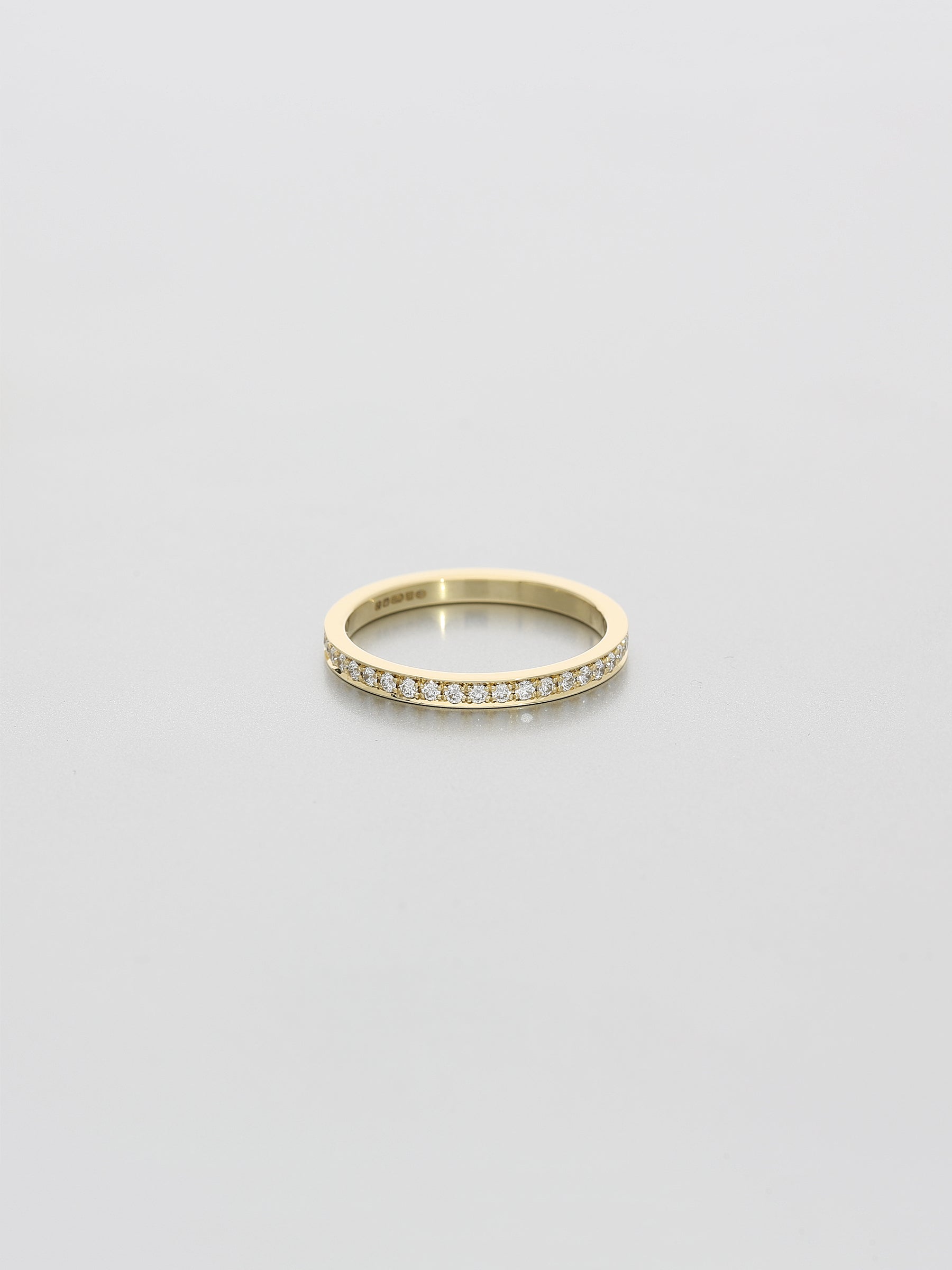 Handcrafted in 18ct. yellow gold.Polished finish.White diamonds pavé set total 0.40ct F-G VS.Flat profile, classic width 2.3mm x depth 1.6mm.