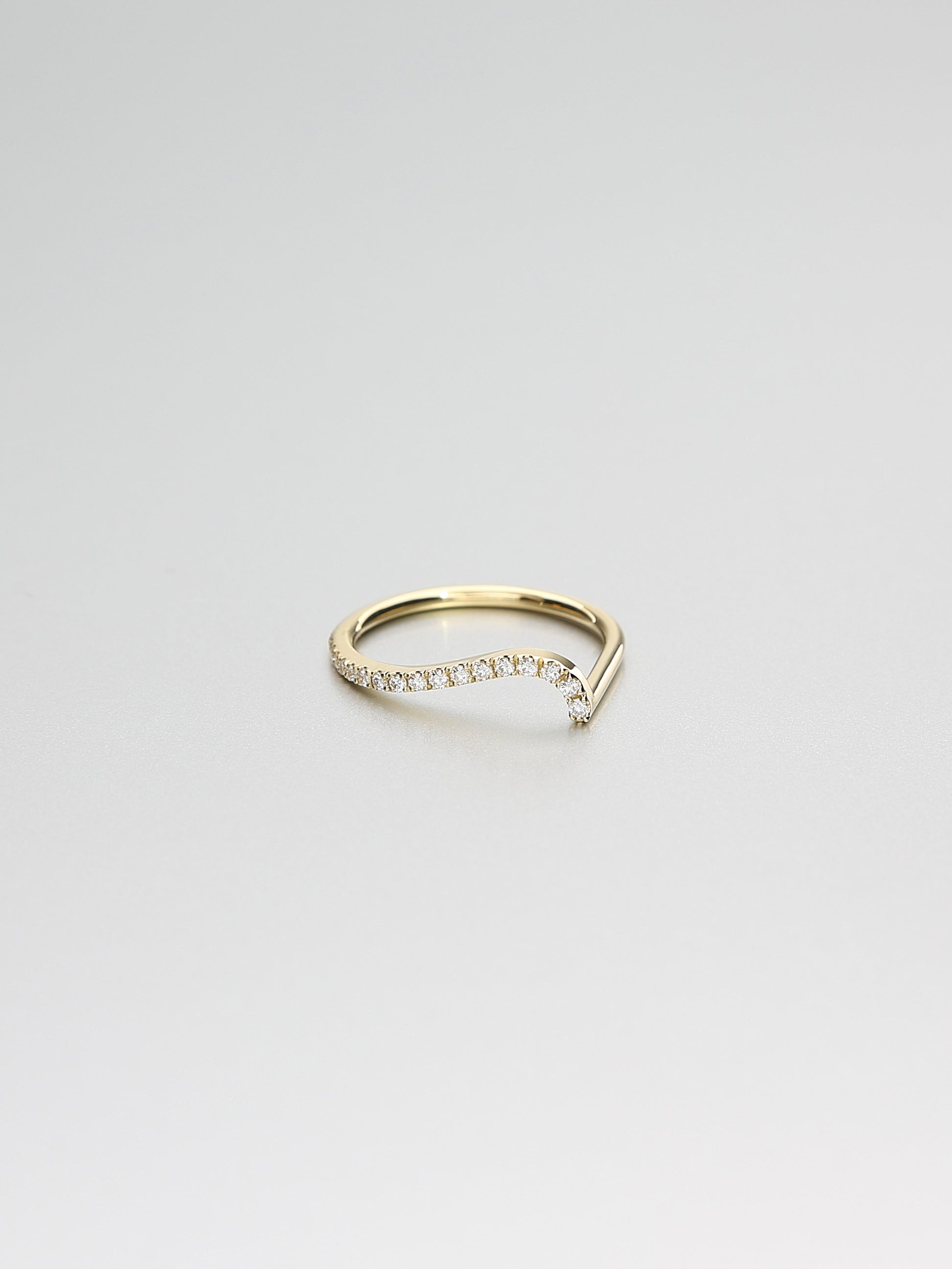 A delicate curved band worn alone or as wedding band matching other Ada rings. Castelle set with white brilliant cut diamonds along the top.