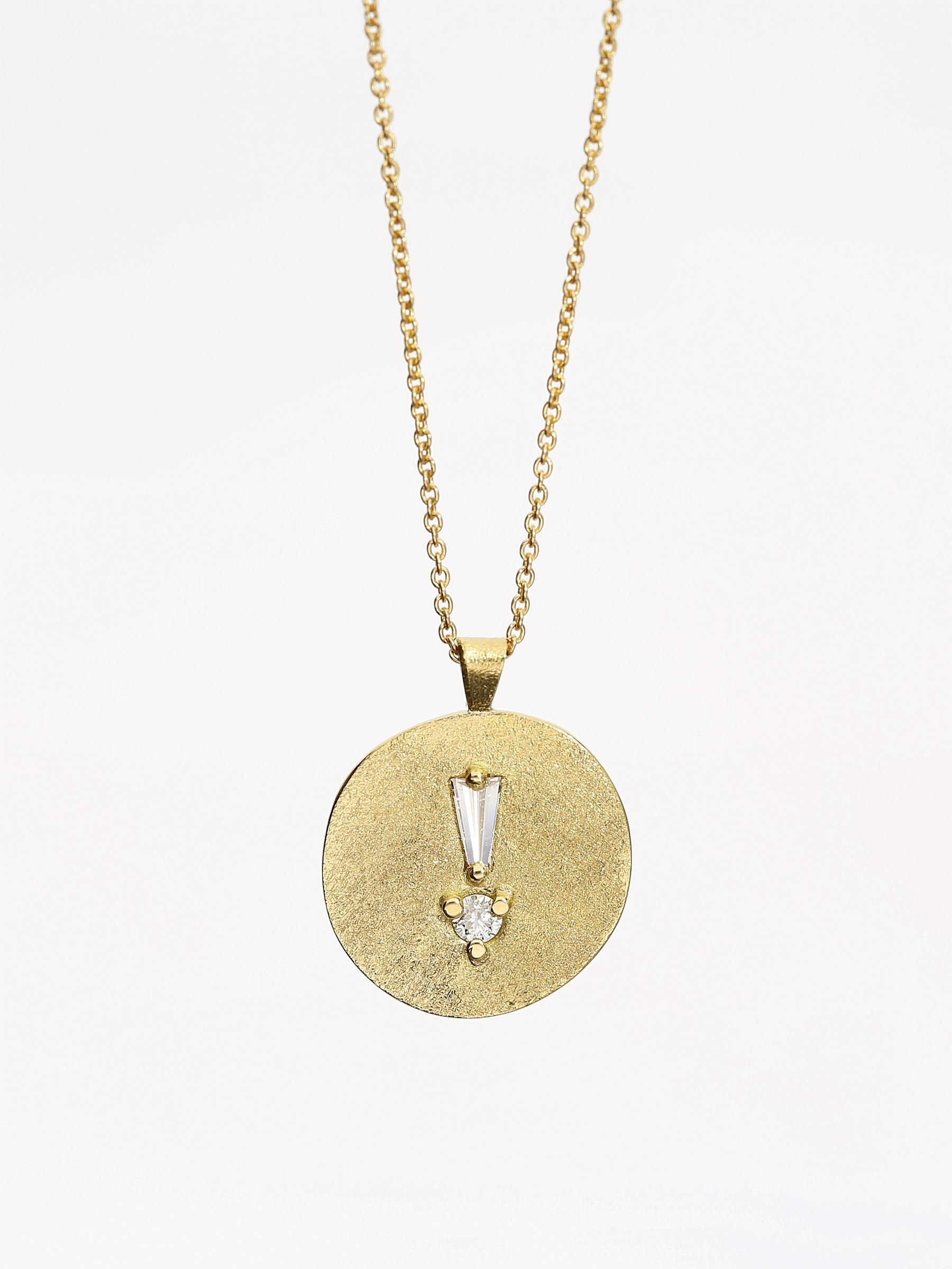 Champagne diamond, tapered baguette cut 0.07ct and a white diamond brilliant cut 0.04ct.