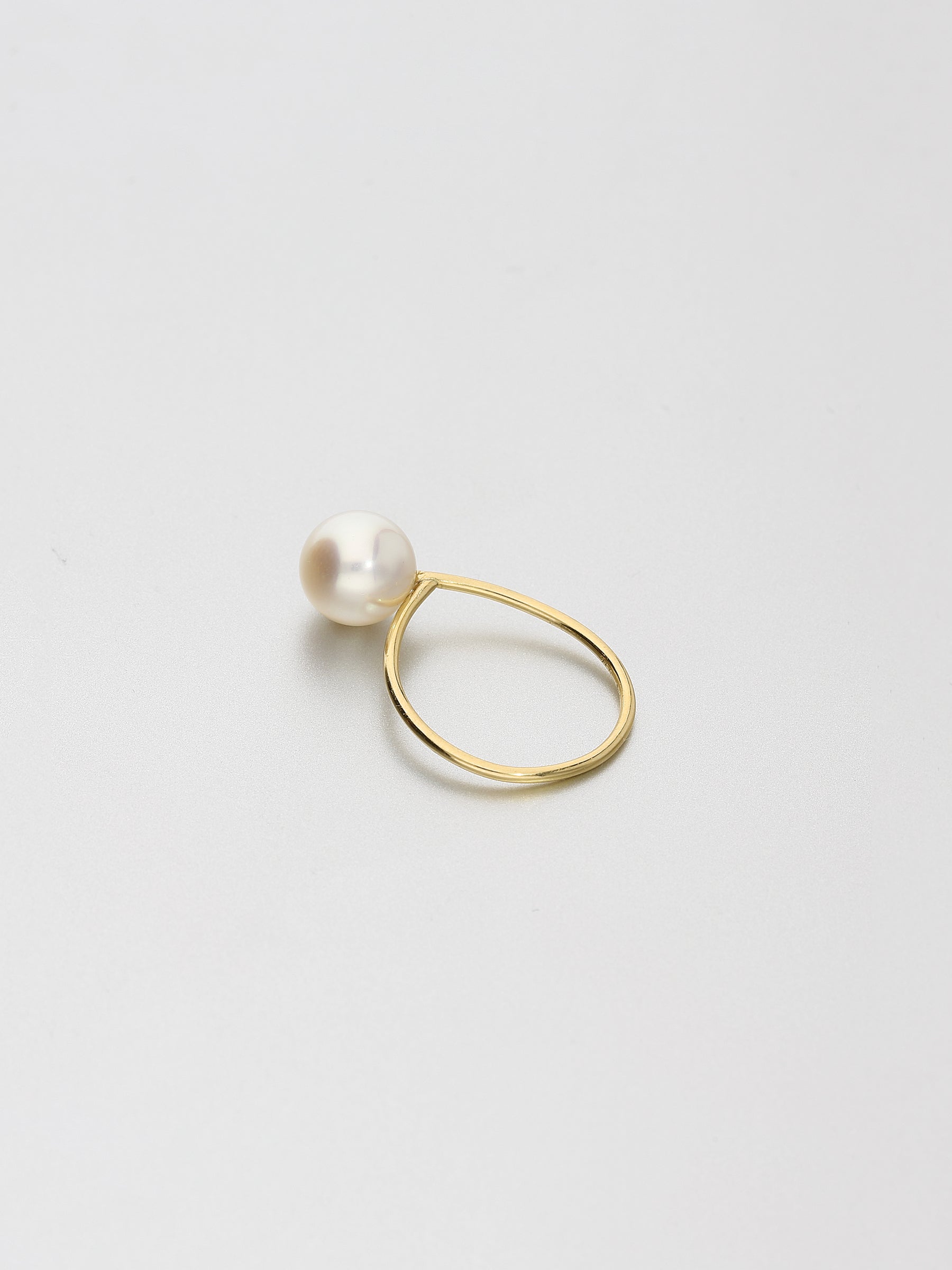 The minimalistic Fine Pearl Ring prizes a single pearl set upon an understated slim gold ring, designed to fall to one side and neatly rest between your fingers.