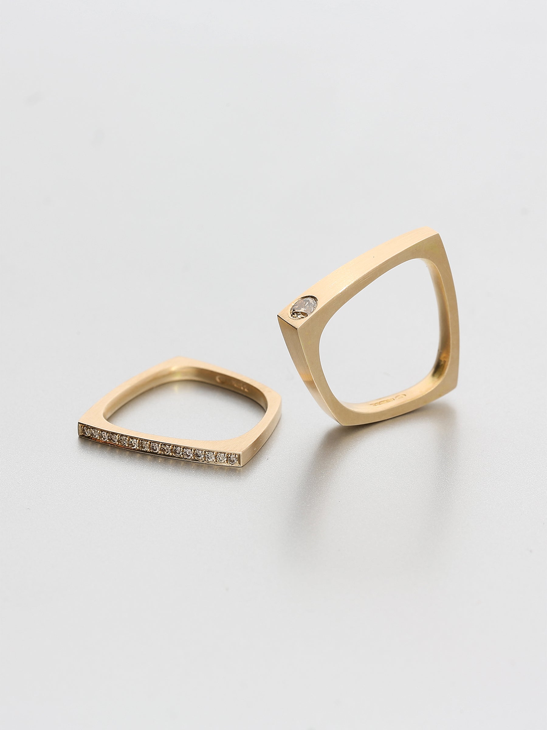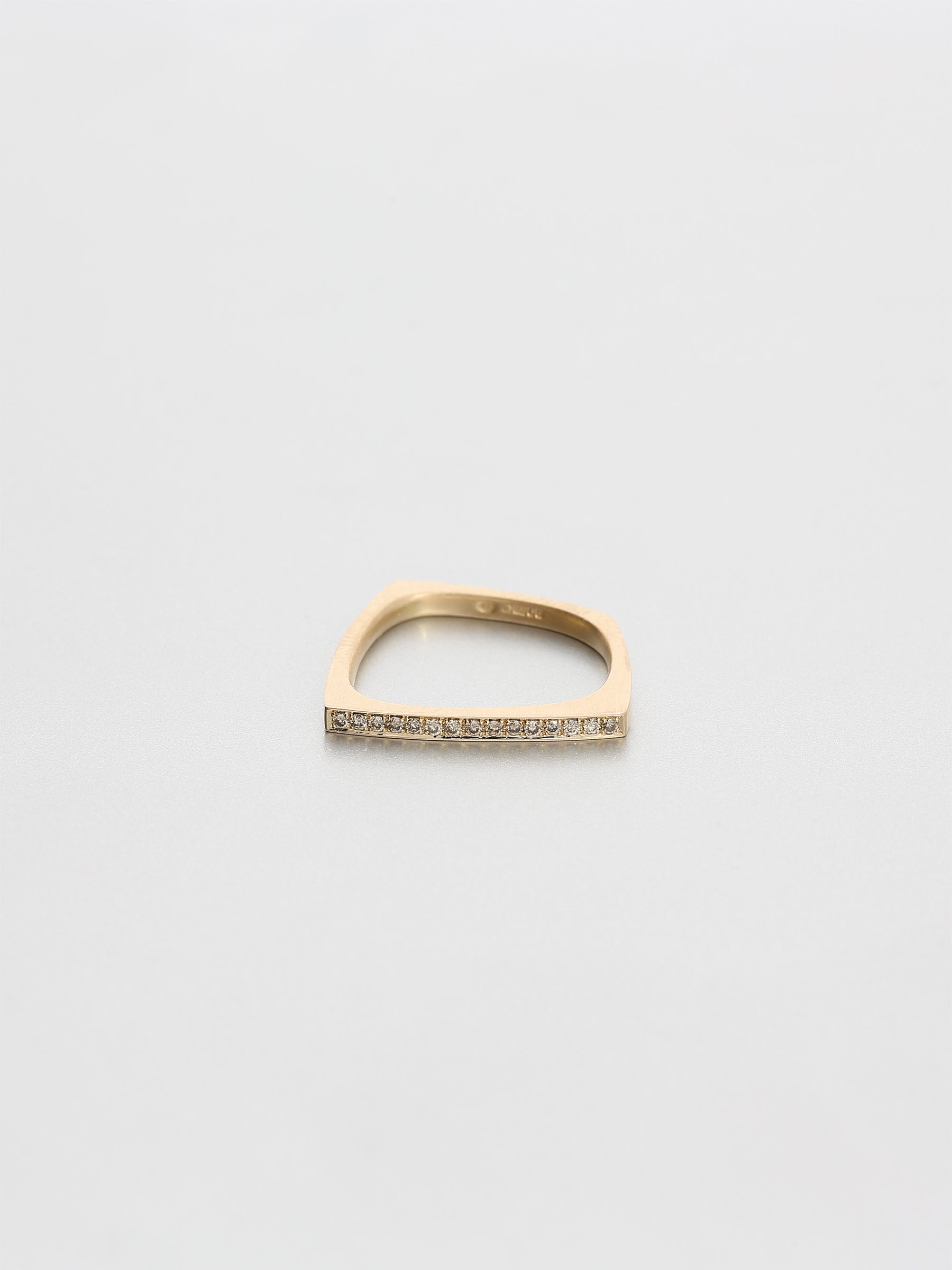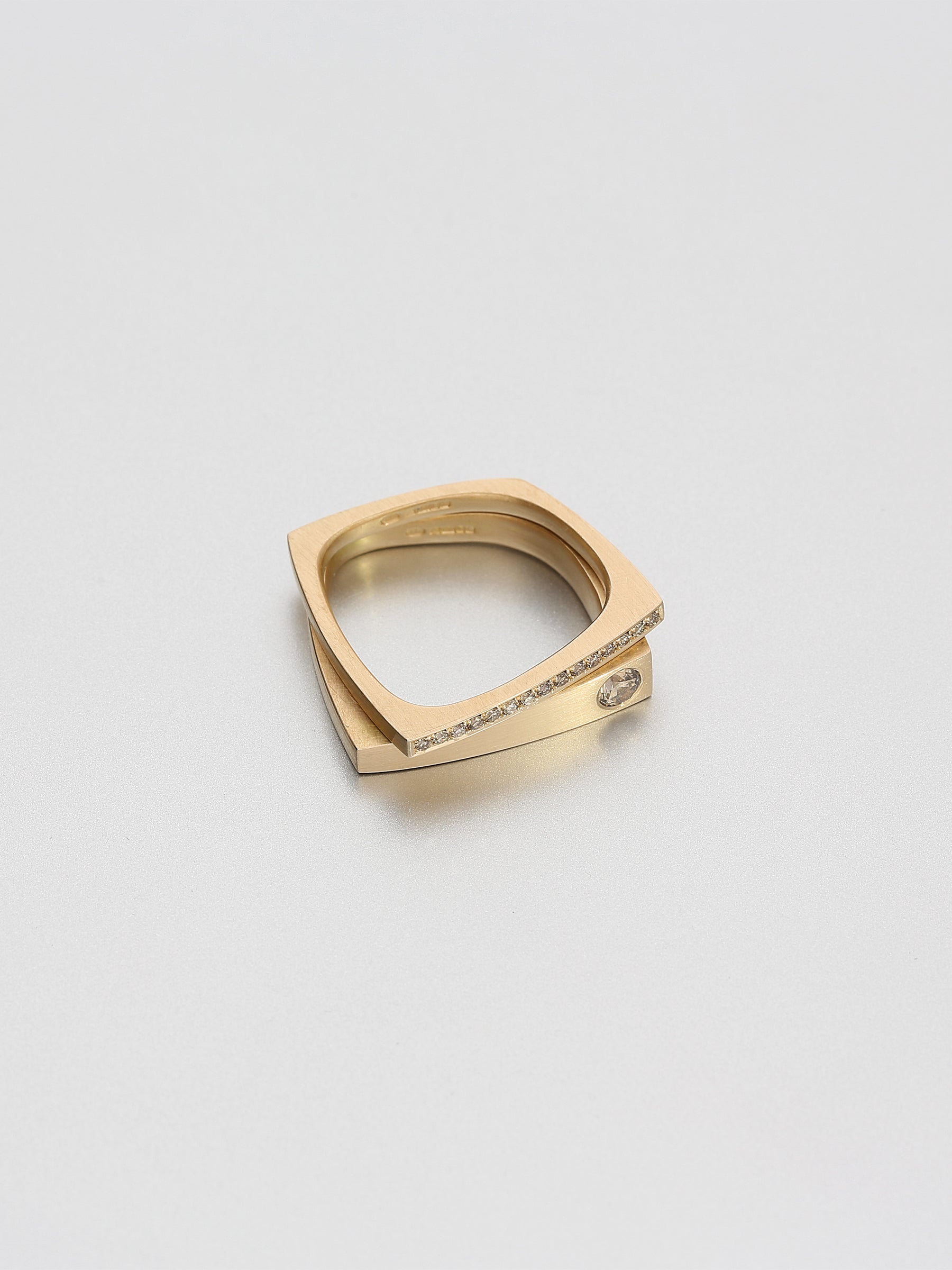 The slim square ring in its asymmetric form is designed to pair with the Leo VI ring. A neat thin sliver modestly crafted in gold or adorned with pave set diamonds on its top edge.