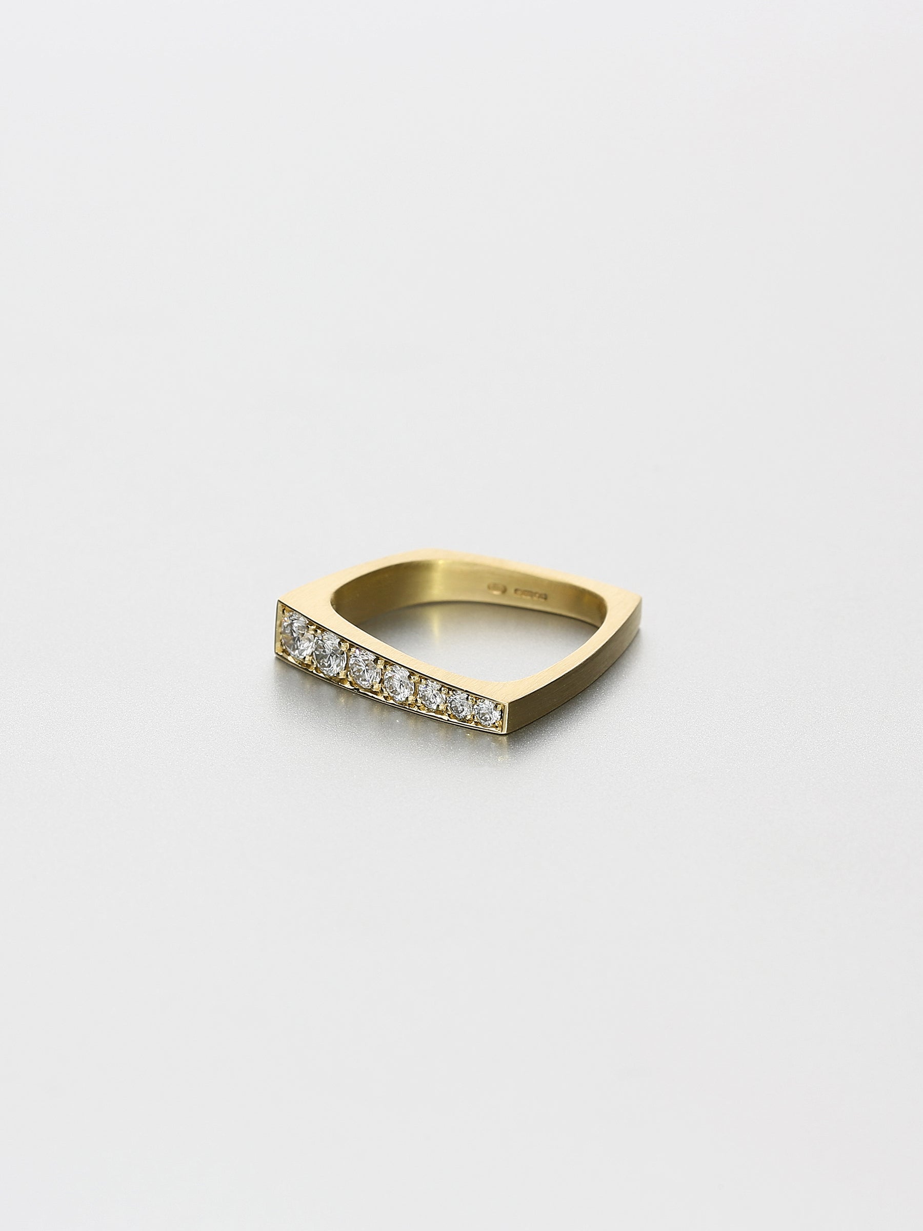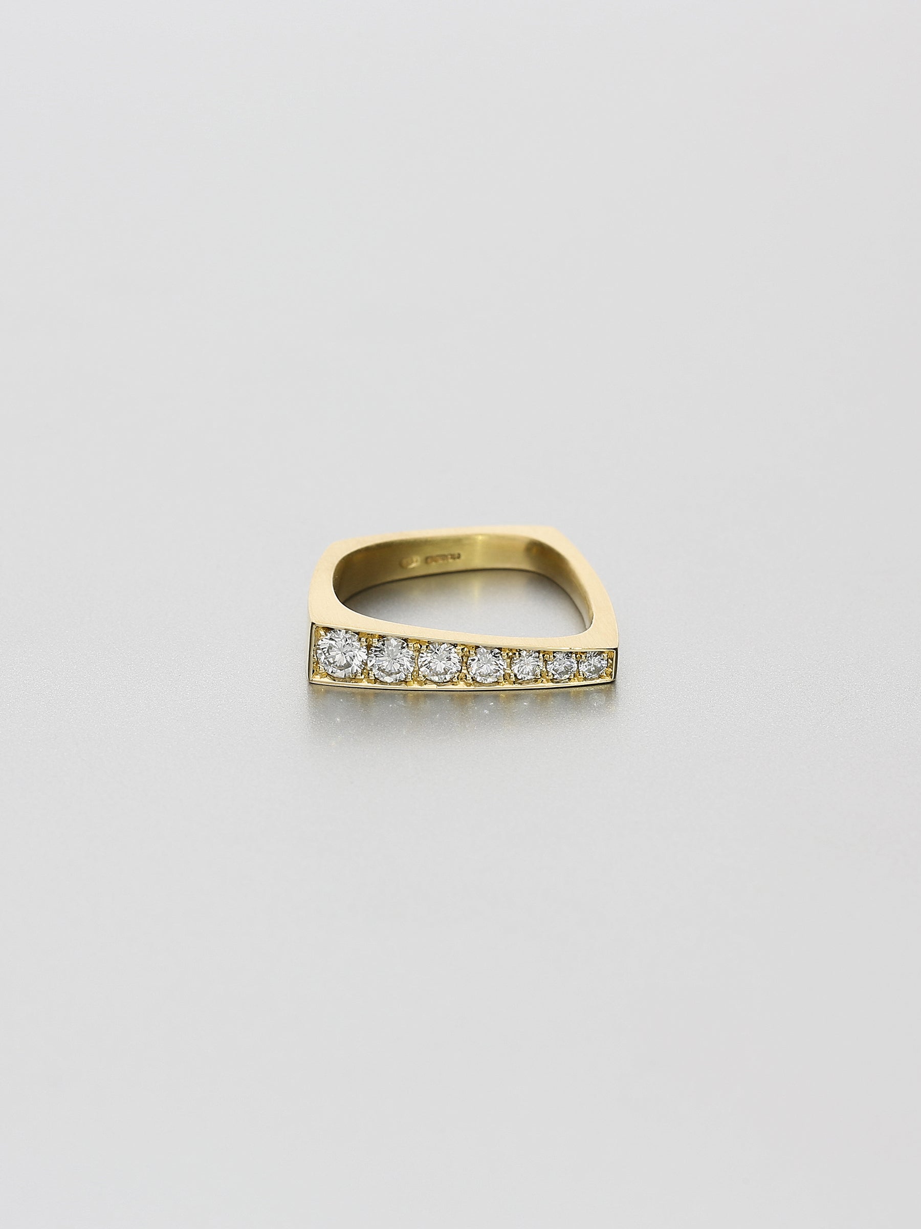 An asymmetric square ring of understated elegance. Swept with tapered angles, curves and pavé set with seven brilliant cut diamonds on top, the Leo VI ring makes a modern statement.
